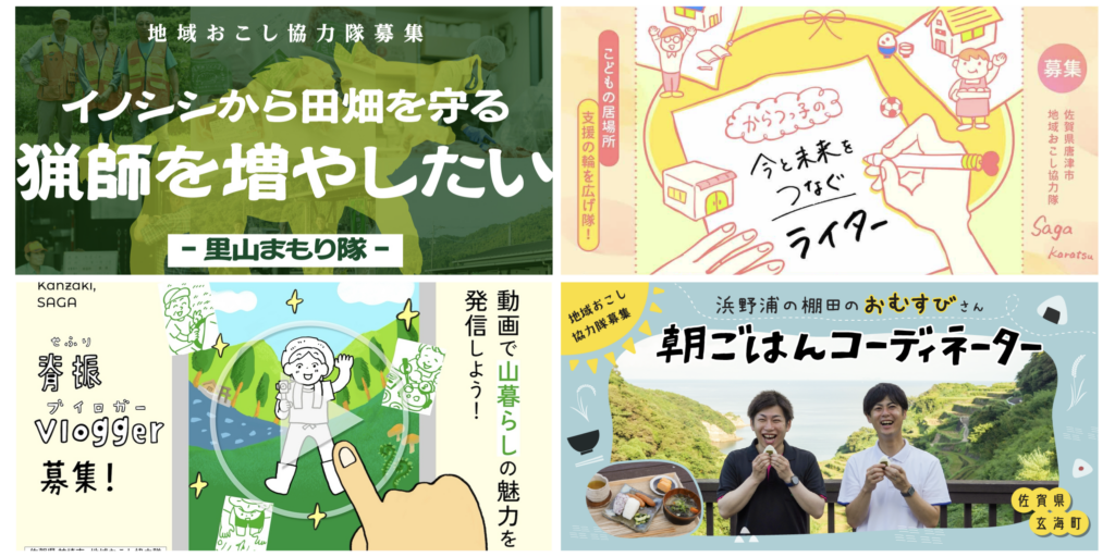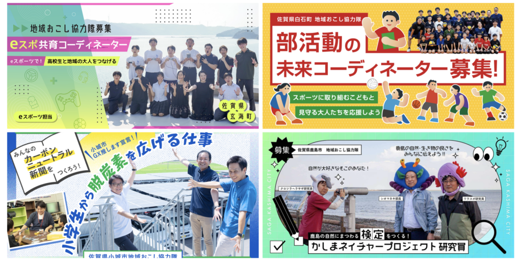 | PR | 佐賀県全体の協力隊のPR。オン/オフラインを駆使して協力隊の認知度や印象を向上させる業務。 |